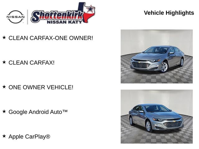 This 2023 Chevrolet Malibu LT 1LT is a truly remarkable vehicle, offering a premium driving experience at an exceptional value. With its clean CARFAX history and one-owner status, you can be confident in its quality and reliability. Visit us today to take this Malibu for a test drive and experience the difference for yourself.
