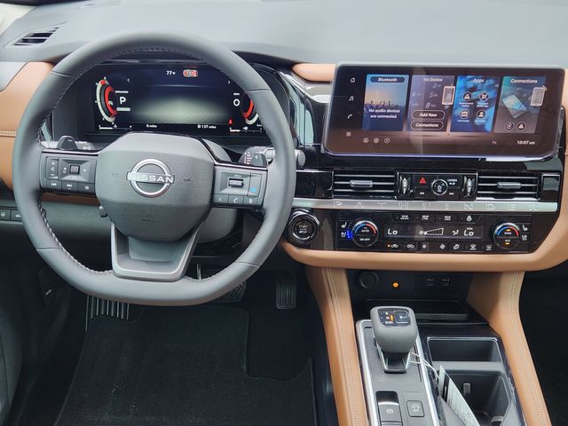Step inside and be enveloped in the epitome of luxury. The Pathfinder Platinum's spacious and meticulously designed interior boasts premium leather-appointed seating surfaces, heated and ventilated front seats, and a Bose Premium Audio System that will immerse you in your favorite music. The intuitive NissanConnect infotainment system, complete with Apple CarPlay and Android Auto integration, puts the world at your fingertips.