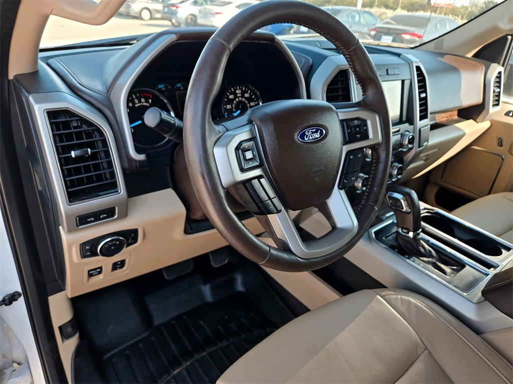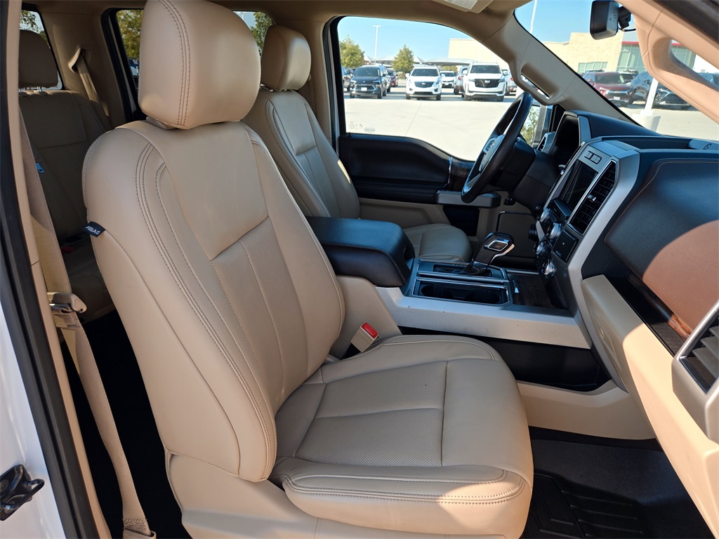 Clean CARFAX. 4WD, Bluetooth, Hands-Free Connections, Navigation / GPS / Telematics, Portable Audio Connections, Premium Audio, Backup Camera, Heated and Cooled Seats, Leather Seats, Premium Wheels, High Performance Tires, Sunroof / Moonroof, Towing Package, F-150 Lariat, 4D SuperCrew, 3.5L V6 EcoBoost, 10-Speed Automatic, 4WD, White Platinum Metallic Tri-Coat, Medium Light Camel w/Leather-Trimmed Bucket Seats, ABS brakes, Alloy wheels, Compass, Electronic Stability Control, Front dual zone A/C, Heated door mirrors, Heated front seats, Illuminated entry, Low tire pressure warning, Remote keyless entry, Traction control.