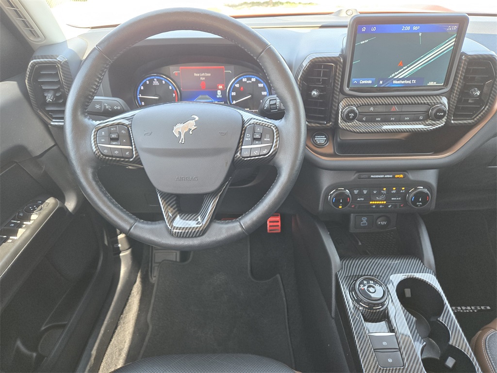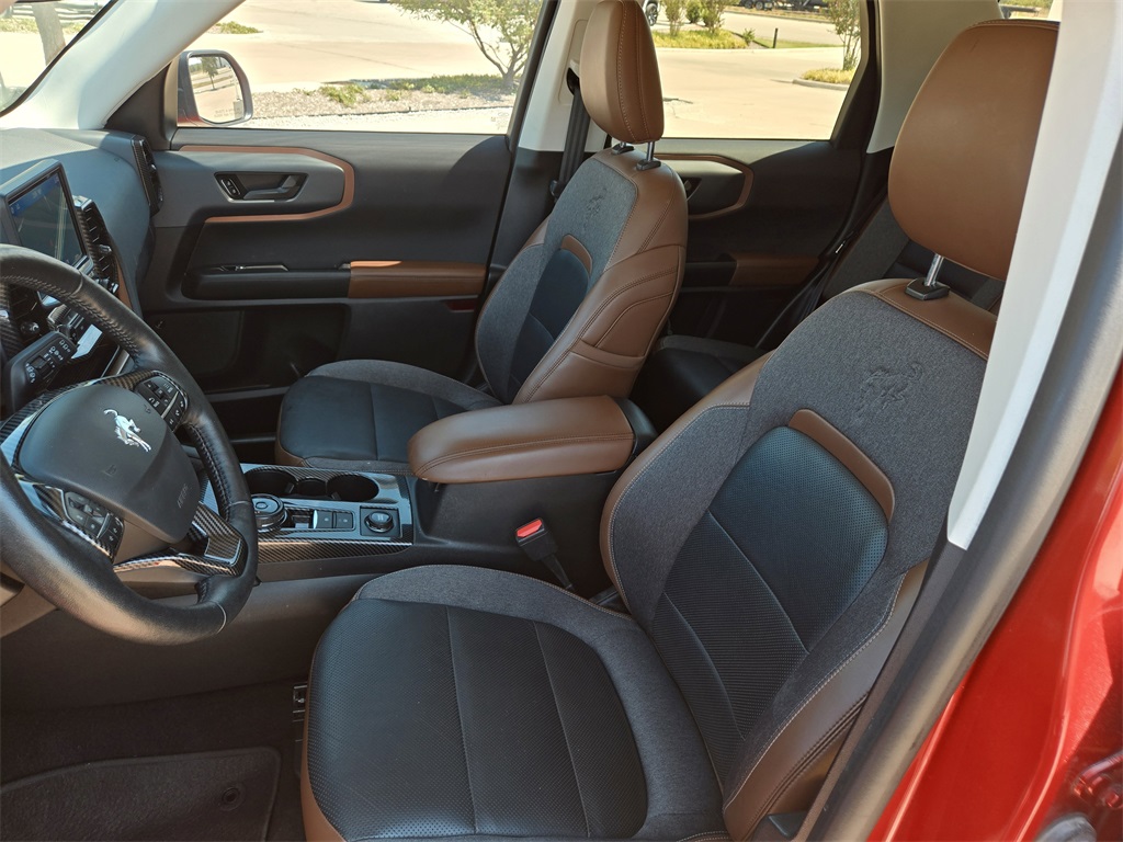 4WD, Bluetooth, Hands-Free Connections, Portable Audio Connections, Premium Audio, Backup Camera, Premium Wheels, High Performance Tires, Towing Package, Bronco Sport Outer Banks, 4D Sport Utility, 1.5L EcoBoost, 8-Speed Automatic, 4WD, Hot Pepper Red Tinted Clearcoat, Ebony/Roast w/Leather Trimmed Heated Sport Contour Bucket Seats, Equipment Group 300A, Evasive Steering Assist, Ford Co-Pilot360 Assist+, HD Radio, Intelligent Adaptive Cruise Control w/Stop & Go, Rear Parking Sensors, Tech Package, Universal Garage Door Opener (UGDO), Voice-Activated Touchscreen Navigation System, Wireless Charging Pad.