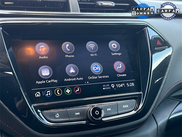 APPLE CAR PLAY, ANDROID AUTO, BLUETOOTH, ALLOY WHEELS, WELL MAINTAINED, GREAT VALUE, LOW MILES, LOW PAYMENTS, TrailBlazer RS, 4D Sport Utility, 1.3L Ecotec Turbo DOHC SIDI w/VVT, CVT, FWD, Mosaic Black Metallic, Jet Black With Red Accents Cloth, 1 Type-A & 1 Type-C USB Charging-Only Ports, 120-Volt Power Outlet, 8" Diagonal Color Touchscreen Display, Cabin Humidity Sensor, Convenience Package, Driver & Front Passenger Illuminated Vanity Mirrors, Driver Confidence Package, Inside Rear-View Auto-Dimming Mirror, Lane Change Alert w/Side Blind Zone Alert, Rear Cross Traffic Alert, Rear Park Assist, Single-Zone Auto Climate Control Air Conditioning.
