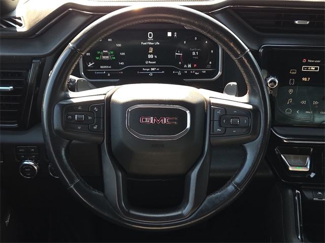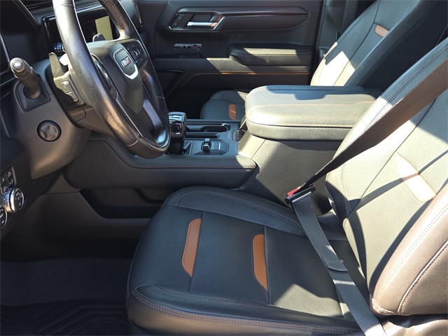 Clean CARFAX. 2023 GMC Sierra 1500 AT4 4D Crew Cab Onyx Black 3.0L I6 10-Speed Automatic 4WD This vehicle comes well equipped with AT4 Preferred Package (Adaptive Cruise Control, Power Sliding Rear Window w/Rear Defogger, and Universal Home Remote), Preferred Equipment Group 4SB (120-Volt Bed Mounted Power Outlet, 120-Volt Instrument Panel Power Outlet, 2 Charge/Data USB Ports Inside Center Console, 2 Type-C Charge-Only Rear USB Ports, 2 USB Ports, 220 Amp Alternator, Auto-Locking Rear Differential, Black Chrome Header & Grille Insert Bars, Color-Keyed Carpeting Floor Covering, Compass, Deep-Tinted Glass, Electric Rear-Window Defogger, Electrical Steering Column Lock, Floor-Mounted Center Console, Front Prem Floor Liners w/Removable Carpet Insert, Front Rainsensing Wipers, GMC Connected Access Capable, HD Surround Vision, Heated 2nd Row Outboard Seats, Heated Driver & Front Outboard Passenger Seating, Heavy-Duty Air Filter, Hill Descent Control, Hitch Guidance w/Hitch View, In-Vehicle Trailering App, Integrated Trailer Brake Controller, Keyless Open & Start, LED Cargo Area Lighting, OnStar & GMC Connected Services Capable, Perimeter Lighting, Power Door Locks, Power Front Passenger Windows w/Express Up/Down, Power Front Windows w/Driver Express Up/Down, Power Rake & Telescoping Steering Column, Power Rear Windows w/Express Down, Premium Bose 7-Speaker Sound System, Push Button Start, Rear Cross Traffic Braking, Rear Pedestrian Detection, Rear Prem Floor Liners w/Removable Carpet Insert, Rear Wheelhouse Liners, Red Recovery Hooks, Remote Vehicle Starter System, SiriusXM w/360L, Spray-On Pickup Bed Liner w/AT4 Logo, Steering Wheel Audio Controls, Theft Deterrent System (Unauthorized Entry), Trailer Camera Provisions, Trailer Side Blind Zone Alert, Ultrasonic Front & Rear Park Assist, Ventilated Driver & Front Passenger Seats, Wi-Fi Hotspot Capable, Wireless Charging, and Wireless Phone Projection), Trailering Package (Hitch Guidance), Sierra 1500 AT4, 4D Crew Cab, Onyx Black, 18" x 8.5" Machined Aluminum Wheels, 4-Wheel Disc Brakes, ABS brakes, All-Weather Floor Liners w/AT4 Logo (LPO), Apple CarPlay/Android Auto, Auto High-beam Headlights, Auto-dimming door mirrors, Auto-dimming Rear-View mirror, Automatic Emergency Braking, Automatic temperature control, Black Sport Step (LPO), Block heater, Buckle to Drive, Bumpers: body-color, Delay-off headlights, Driver Memory, Dual front impact airbags, Dual front side impact airbags, Engine Block Heater, Front fog lights, Fully automatic headlights, Heated door mirrors, IntelliBeam Automatic High Beam On/Off, Memory seat, Navigation System, Off-Road Suspension, Power door mirrors, Power driver seat, Power steering, Power windows, Rear step bumper, Remote keyless entry, Speed-sensing steering, Steering wheel mounted audio controls, Traction control, and Wheels: 20" x 9" Machined Aluminum AT4 Preferred Package (Adaptive Cruise Control, Power Sliding Rear Window w/Rear Defogger, and Universal Home Remote), Preferred Equipment Group 4SB (120-Volt Bed Mounted Power Outlet, 120-Volt Instrument Panel Power Outlet, 2 Charge/Data USB Ports Inside Center Console, 2 Type-C Charge-Only Rear USB Ports, 2 USB Ports, 220 Amp Alternator, Auto-Locking Rear Differential, Black Chrome Header & Grille Insert Bars, Color-Keyed Carpeting Floor Covering, Compass, Deep-Tinted Glass, Electric Rear-Window Defogger, Electrical Steering Column Lock, Floor-Mounted Center Console, Front Prem Floor Liners w/Removable Carpet Insert, Front Rainsensing Wipers, GMC Connected Access Capable, HD Surround Vision, Heated 2nd Row Outboard Seats, Heated Driver & Front Outboard Passenger Seating, Heavy-Duty Air Filter, Hill Descent Control, Hitch Guidance w/Hitch View, In-Vehicle Trailering App, Integrated Trailer Brake Controller, Keyless Open & Start, LED Cargo Area Lighting, OnStar & GMC Connected Services Capable, Perimeter Lighting, Power Door Locks, Power Front Passenger Windows w/Express Up/Down, Power Front Windows w/Dri
