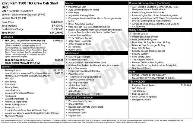 Bright White Clearcoat 2023 Ram 1500 TRX 6.2L Supercharged HEMI V8 SRT 4WD 8-Speed Automatic 4D Crew Cab